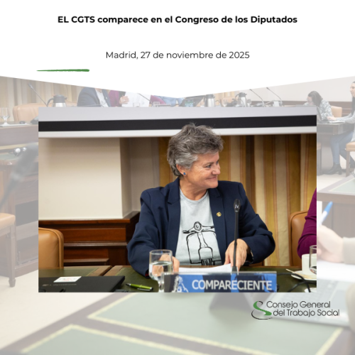 El Consejo General del Trabajo Social (CGTS), representado por su presidenta, Emiliana Vicente, compareció ayer por la tarde ante la Comisión de Derechos Sociales y Consumo del Congreso de los Diputados, en el marco de la tramitación del Proyecto de Ley por el que se modifica la Ley General de Derechos de las Personas con Discapacidad y la Ley de Promoción de la Autonomía Personal y Atención a las Personas en Situación de Dependencia.