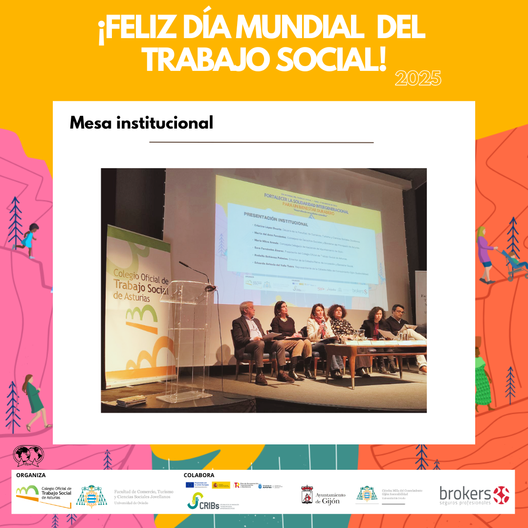 Queremos agradecer de nuevo a la Facultad Jovellanos, la Cátedra Retos de Innovación y Bienestar Social (CRIBs) de la Universidad de Oviedo, la Cátedra Gijón Sostenibilidad Milla del Conocimiento y Brokers´88, el apoyo en la organización de la Jornada que con este motivo, en el día de ayer, congregó en La Laboral a más de un centenar de profesionales y estudiantes del Grado en Trabajo Social.