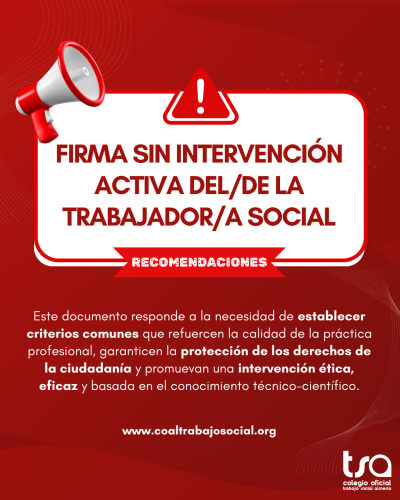 Recomendaciones sobre la firma sin intervención activa del/de la Trabajador/a Social