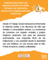 Frente al racismo y la xenofobia, la respuesta es la unidad. Pedimos a cada ciudadana/o que defienda los derechos humanos, pilares que garantizan la dignidad de cada persona. Es necesario rechazar el odio en todas sus formas. Nuestro compromiso debe ser construir una sociedad plural, donde la diversidad sea una fortaleza, justa y segura para todas. Contra el racismo, nuestra arma más potente es la solidaridad, un lazo que nos une como comunidad.