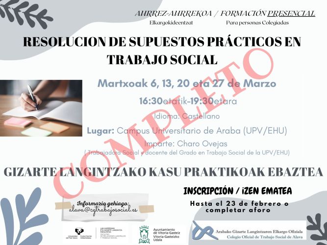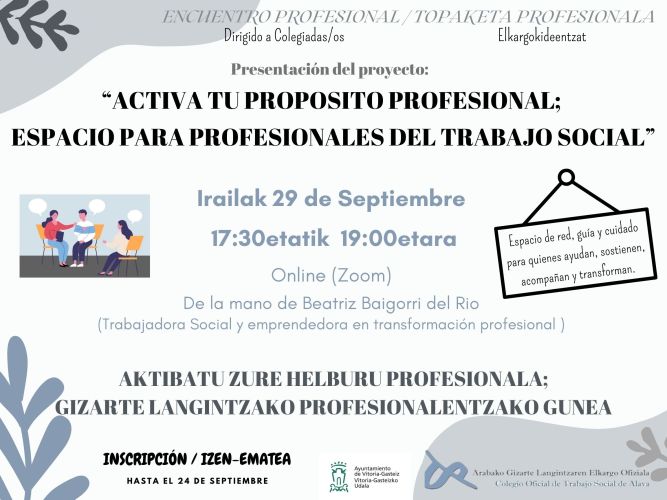 Ya puedes reservar tu plaza para el próximo encuentro profesional que será liderado por Idoia Benito, colegiada trabajadora social y sexóloga.