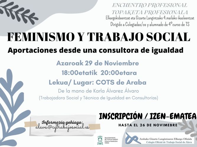 Ya puedes reservar tu plaza para el próximo encuentro profesional que será liderado por Idoia Benito, colegiada trabajadora social y sexóloga.