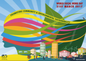 El 21 de Marzo 2017 celebraremos el Día Mundial del Trabajo Social 2017. El lema de este año es “Promoviendo comunidades y entornos sostenibles”, referido al tercer pilar de los compromisos de la Agenda Global del Trabajo Social y Desarrollo Social, de dos años de duración, siendo 2017 el primer año de su celebración.