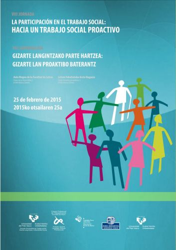 El 25 de Febrero celebramos la VIII edición de la Jornada de Trabajo Social : “LA PARTICIPACION EN TS: HACIA UN TRABAJO SOCIAL PROACTIVO”, en el Aula Magna de la Facultad de Letras de la Universidad del País Vasco.