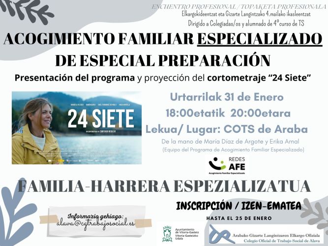 El próximo 31 de enero, profesionales del equipo del Programa de Acogimiento Familiar Especializado nos informarán sobre esta nueva modalidad de acogimiento, que además es una oportunidad laboral a la que optamos como profesionales del Trabajo Social.