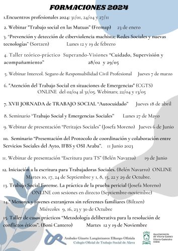 Lan Harreman eta Gizarte Langintza Fakultatearekin batera, Gasteizko Udalaren laguntzarekin, urteko moduan antolatzen dugun Gizarte Langintzako XVII. Jardunaldiaren programa bidaltzen dizuegu.
