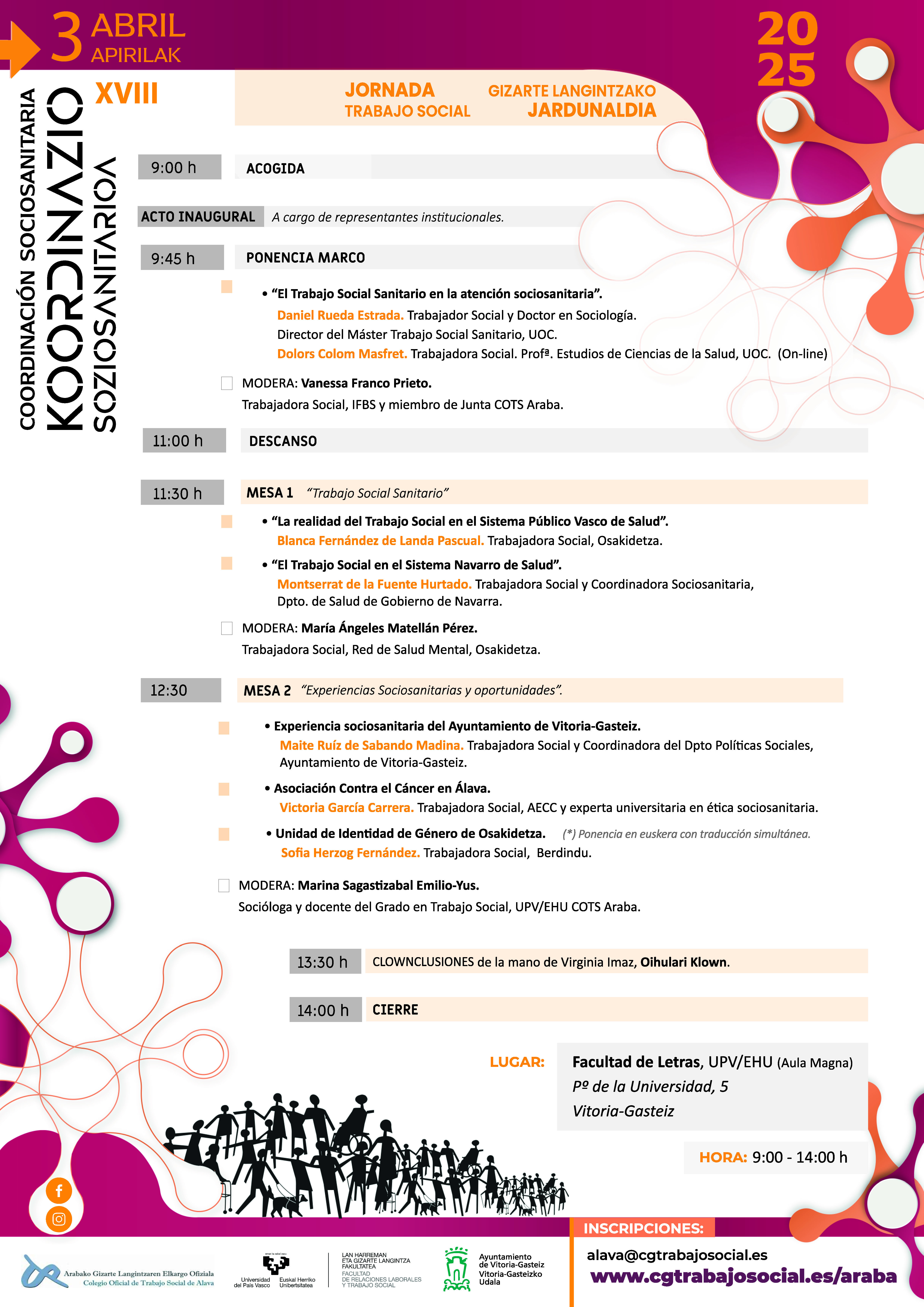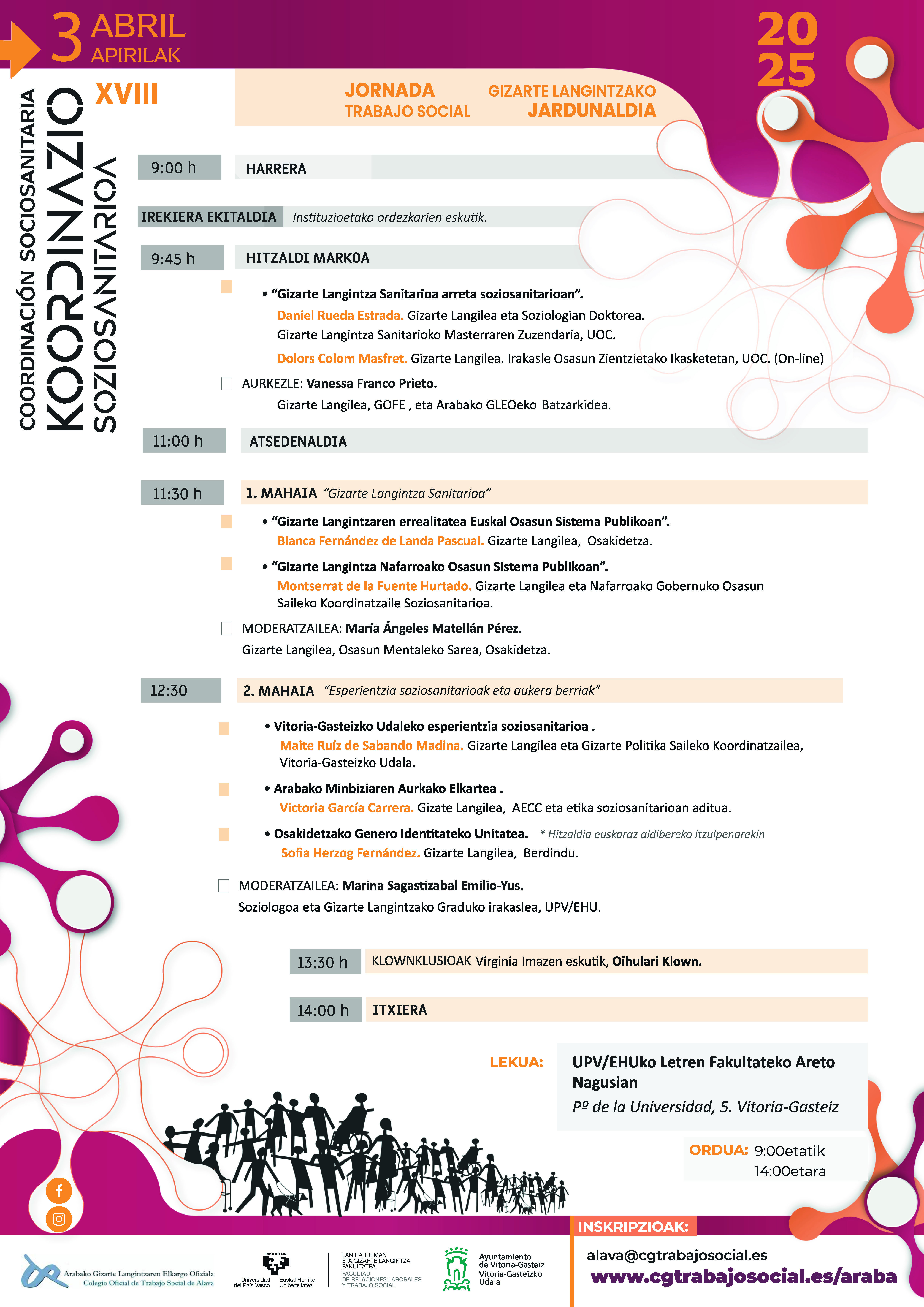 Apirilaren 3an ospatu dugu UPV/EHUrekin batera antolatzen dugun Gizarte Langintzaren XVIII Jardunaldia, aurten, Koordinazio Soziosanitarioari buruz hitz egiteko.