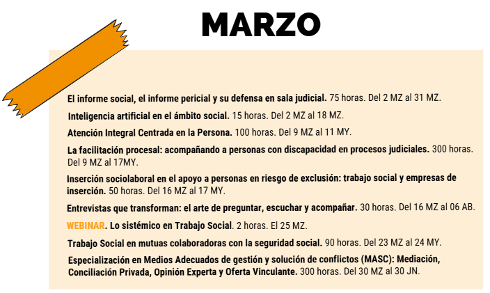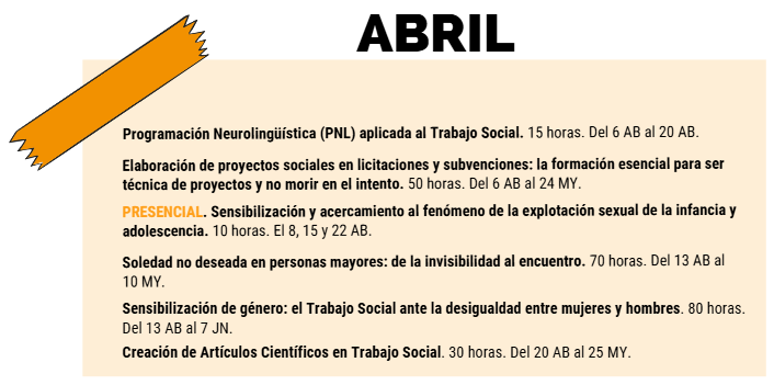 Recuerda, al menos un mes antes de que comience la formación, el plazo de inscripción estará abierto. Las matrículas se cerrarán el lunes antes al inicio de la formación. Ante cualquier duda sobre la formación, escríbenos al correo formacion.cotsa@gmail.com