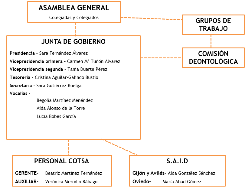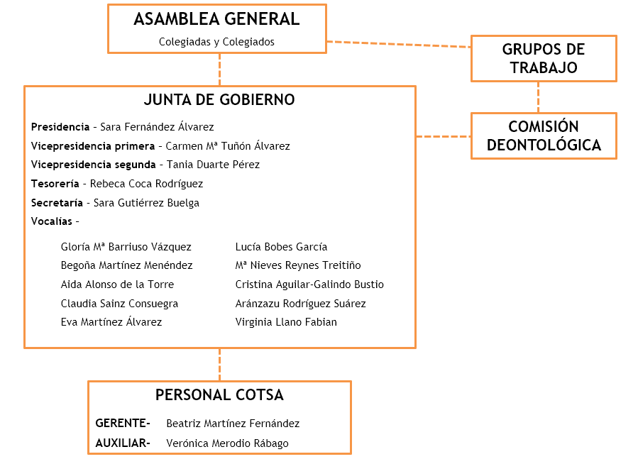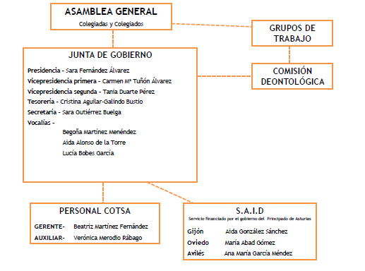 Los órganos de gobierno del Colegio Oficial de Trabajo Social de Asturias son: