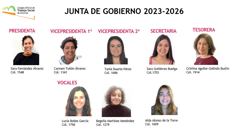 El 27 de abril de 2023, en Asamblea General Extraordinaria fue nombrada la nueva Junta de Gobierno 2023 - 2026 del Colegio Oficial de Trabajo Social de Asturias.