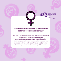 Desde el COTSA reivindicamos el Trabajo Social como instrumento indispensable para el acompañamiento, apoyo y protección de las víctimas, y como herramienta para llevar a cabo los cambios sociales desde la defensa de los Derechos Humanos y la lucha contra la desigualdad social.