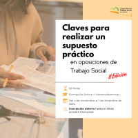 En este curso, se abordará el desarrollo de supuestos prácticos en oposiciones de Trabajo Social, con el objetivo de preparar a los y las participantes para enfrentar con éxito este tipo de pruebas. Para ello, se trabajarán aspectos clave como el análisis de casos, la identificación de necesidades y problemas, el diseño de diagnósticos, la elaboración de planes de intervención y la evaluación de resultados. La realización de este curso capacita al alumnado para afrontar, con confianza, la resolución de un caso práctico ya sea individual, familiar, grupal o comunitario de cualquier administración pública (local, autonómica o estatal).