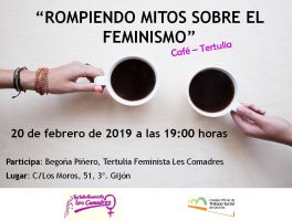 Seguramente, en algún momento de tu vida, has escuchado estas cuestiones o te han planteado alguna de estas preguntas. O incluso tú, puedes tener dudas sobre lo que implica o no ser feminista, o simplemente quieres aportar tu propia visión del tema. Por ello, te invitamos al café-tertulia que organizamos: “Rompiendo mitos sobre el feminismo”.