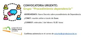 El próximo miércoles, 3 de febrero, a las 18:00 horas nos reuniremos para abordar el Nuevo Decreto sobre el Procedimiento de Dependencia a través de ZOOM.