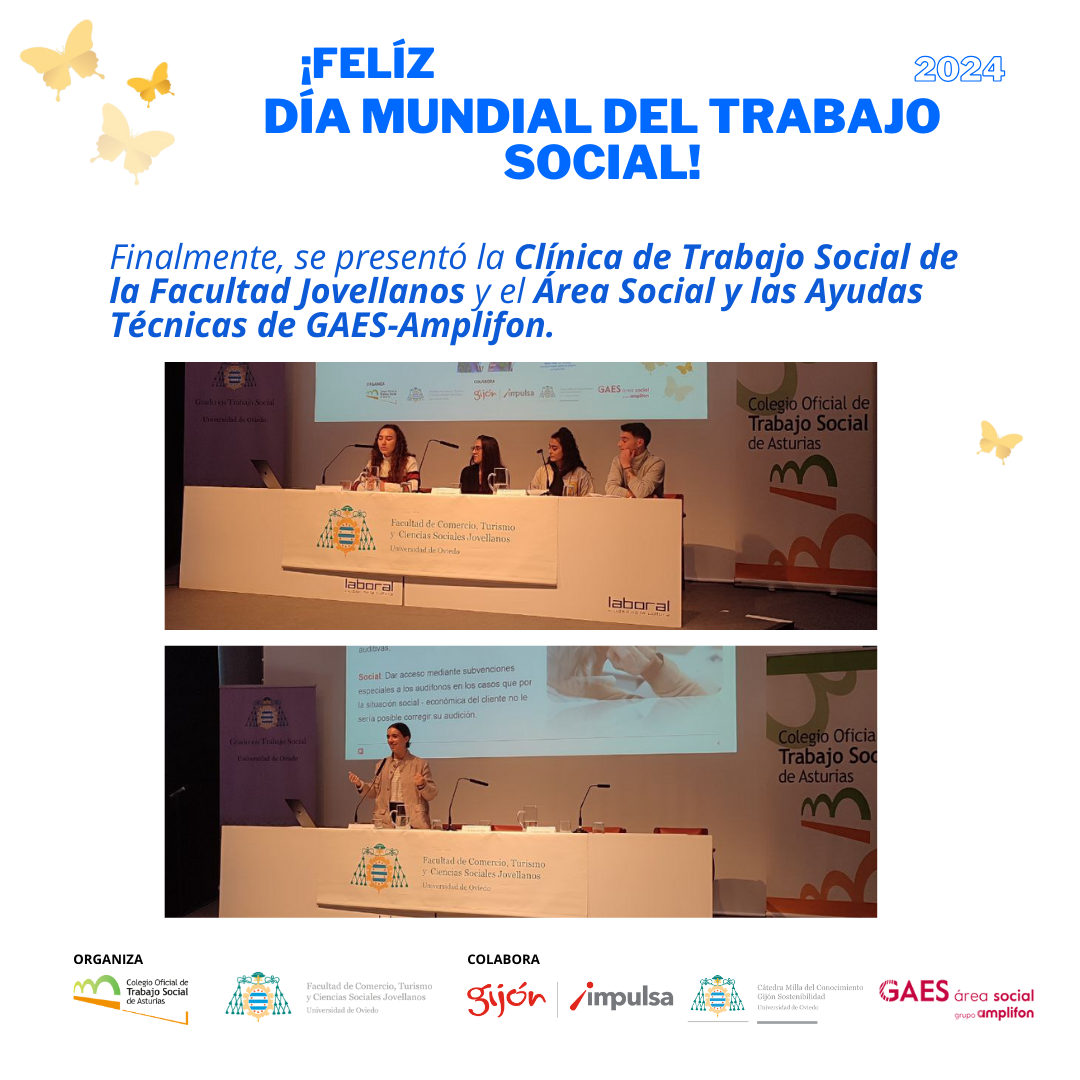 Finalmente, pudimos conocer el espacio de la Clínica de Trabajo Social, que puso en marcha el alumnado de la Facultad Jovellanos; así como el Área Social y las Ayudas Técnicas de GAES-Grupo Amplifon.