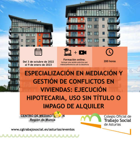 FORMACIÓN | Especialización en mediación y gestión de conflictos en viviendas: ejecución hipotecaria, uso sin título o impago de alquiler