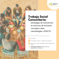 Esta formación de 120 horas aborda los aspectos fundamentales del trabajo social comunitario, centrándose en las estrategias de intervención en entornos de exclusión, las metodologías de trabajo y el uso del Enfoque de Recuperación y Activación Comunitaria Integral (ERACIS).