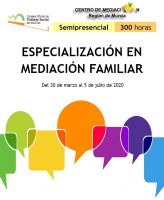 MODALIDAD: semipresencial | HORAS: 300 | FECHAS: del 30 de marzo al 5 de julio de 2020 | IMPARTE: Centro de Mediación Región de Murcia | INSCRIPCIONES: abiertas hasta el lunes, 23 de marzo.