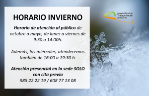 Queremos informarte del nuevo horario que seguirá el COTSA durante los próximos meses de octubre a mayo (ambos inclusive).