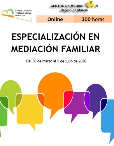 MODALIDAD: online | Nº HORAS: 300 | FECHAS: del 30 de marzo al 5 de julio de 2020 | IMPARTE: Centro de Mediación Región de Murcia | INSCRIPCIONES: abiertas hasta el jueves, 26 de marzo.