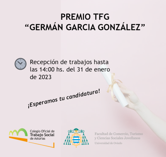 Te presentamos la VII Convocatoria de los Premios Trabajo Fin de Grado “Germán García González”, organizada por el Colegio Oficial de Trabajo Social de Asturias y la Facultad de Comercio, Turismo y Ciencias Sociales “Jovellanos” de la Universidad de Oviedo.