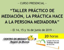 MODALIDAD: presencial | HORAS: 20 | FECHAS: el 14, 15 y 16 de junio de 2019 | IMPARTE: Urbania Rondón, Doctora Cum Laude en Mediación | INSCRIPCIONES: abiertas hasta el viernes, 7 de junio | PERSONAS DESTINATARIAS: cualquier profesional del Trabajo Social, Derecho, Psicología, Pedagogía o Psicopedagogía, Educación Social o cualquier otra titulación universitaria o de formación profesional superior, con formación en mediación que desee continuar especializándose en el campo.