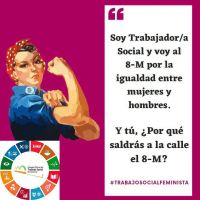 Finalmente, han elaborado una Agenda Especial 8M).pdf donde han recogido las actividades de los diferentes Colegios que se realizarán este fin de semana. Somos muchas las que acudiremos con pancartas y camisetas a las manifestaciones previstas para el 8 de marzo y visibilizaremos en redes sociales que el Trabajo Social es feminista. Te recordamos que el hashtag que se está utilizando para identificar los contenidos de la estructura colegial es #TrabajoSocialFeminista