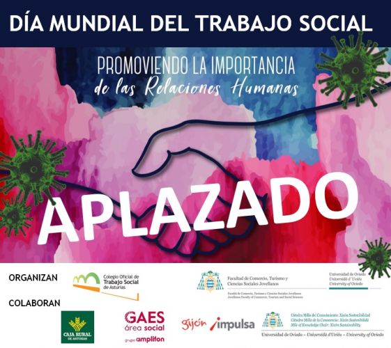 Dadas las circunstancias sanitarias, el Colegio Oficial de Trabajo Social de Asturias, la Facultad de Comercio, Turismo y Ciencias Sociales “Jovellanos” y las entidades colaboradoras, siguiendo las recomendaciones realizadas para prevenir la expansión del coronavirus COVID-19 y haciendo un ejercicio de responsabilidad, hemos acordado la suspensión de los actos previstos para los días 16 y 17 de marzo, con motivo de la Celebración del Día Mundial del Trabajo Social.