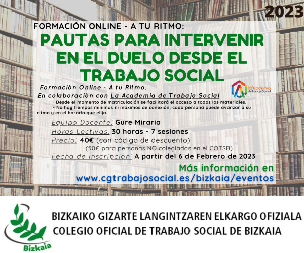 Online Formakuntza // Formación Online: PAUTAS PARA INTERVENIR EN EL DUELO DESDE EL TRABAJO SOCIAL