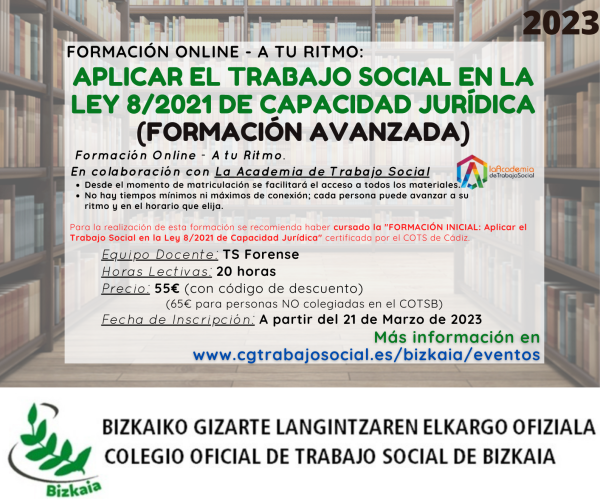 Online Formakuntza // Formación Online: APLICAR EL TRABAJO SOCIAL EN LA LEY 8/2021 - CAPACIDAD JURÍDICA (Nivel Avanzado)