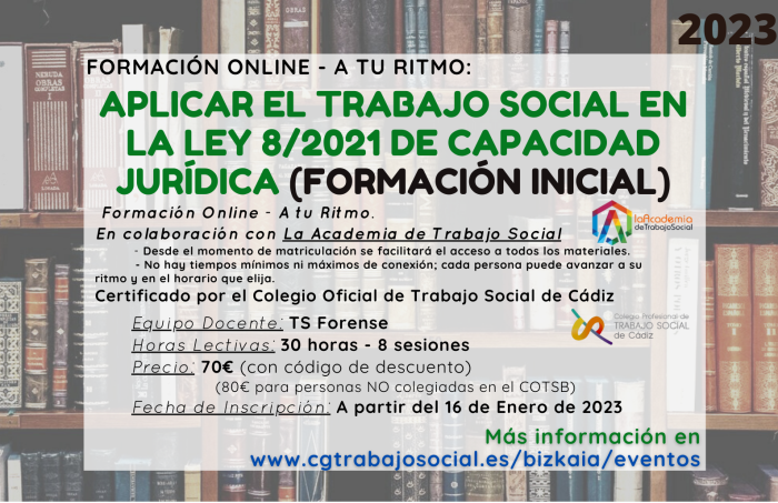 Online Formakuntza // Formación Online: APLICAR EL TRABAJO SOCIAL EN LA LEY 8/2021 - CAPACIDAD JURÍDICA (Nivel Inicial)