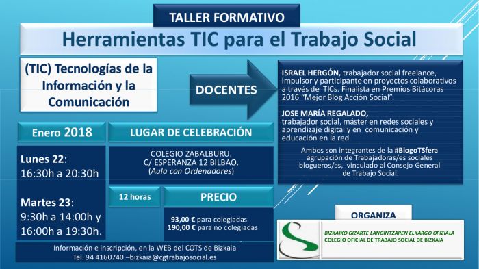 TALLER FORMATIVO: HERRAMIENTAS TIC PARA EL TRABAJO SOCIAL / FORMAKUNTZA TAILERRA: GIZARTE LANGINTZARAKO IKT TRESNAK
