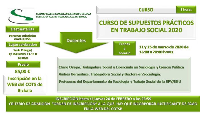 CURSO DE SUPUESTOS PRÁCTICOS EN TRABAJO SOCIAL 2020 GIZARTE LANGINTZAREN KASU PRAKTIKOEN IKASTAROA