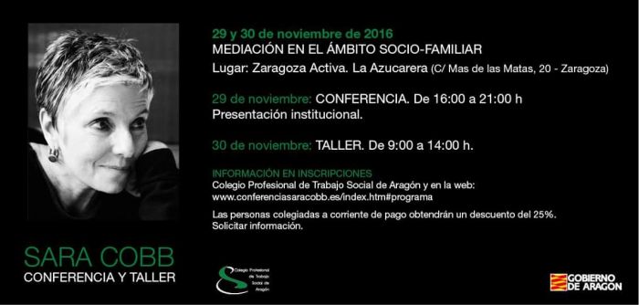 La profesora, mediadora, experta internacional y Doctora en psicología, Sara Cobb, es la directora del instituto de investigación en resolución de conflictos de la Universidad George Manson, en Virginia, EEUU. Es la promotora, impulsora y creadora, desde hace treinta años del Modelo Circular Narrativo en Mediación. Se trata de un modelo que conecta directamente con el Trabajo social e intervención familiar, grupal y comunitaria, y las profesiones de relación de ayuda. Sus pilares se centran en la teoría de sistemas, en la psicología del yo (self) y en el análisis de las narrativas. Todo ello desde una perspectiva crítica que pone el acento en que discursos y narrativas predominan o son excluidas, y en el carácter político-transformador de la mediación en la resolución de conflictos interpersonales y grupales.