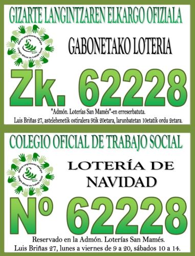 ¡YA ESTÁ A LA VENTA EL Nº DE LOTERÍA DEL COLEGIO OFICIAL DE TRABAJO SOCIAL DE BIZKAIA!