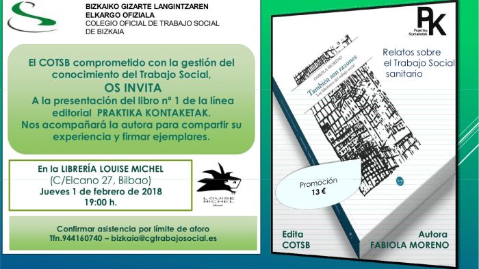 El COTBS comprometido con la gestión del conocimiento del Trabajo Social presenta hoy el libro“También son razones. Los laberintos del Trabajo Social.” de la colegiada Fabiola Moreno, como estreno de nuestra nueva línea editorial PK (Praktika Kontaketa-Relatos de la Práctica)