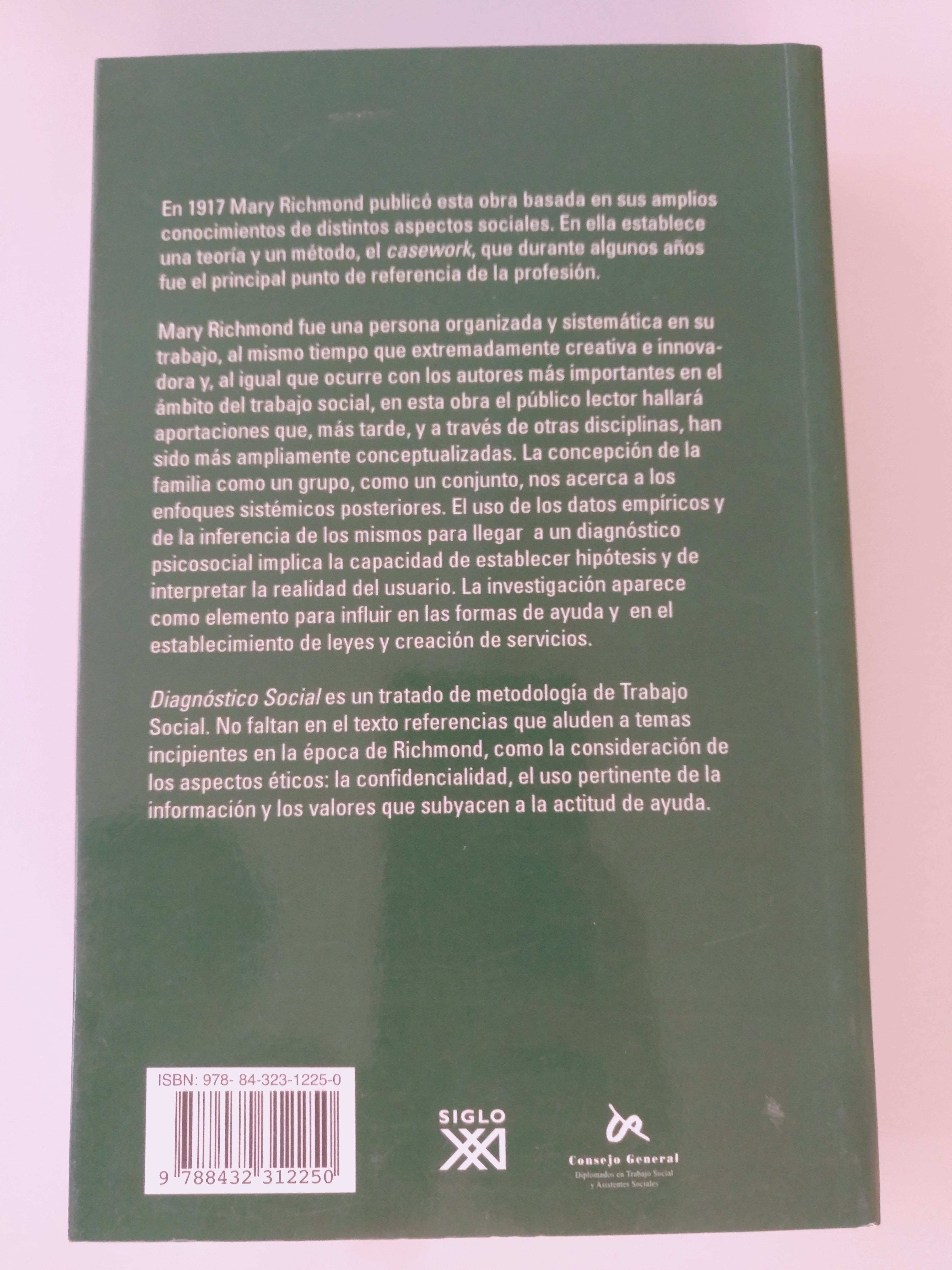 "DIAGNÓSTICO SOCIAL" Madrid 2008 de MARY E. RICHMOND, Editorial SIGLO XXI, de la colección Trabajo Social del Consejo General del Trabajo social.