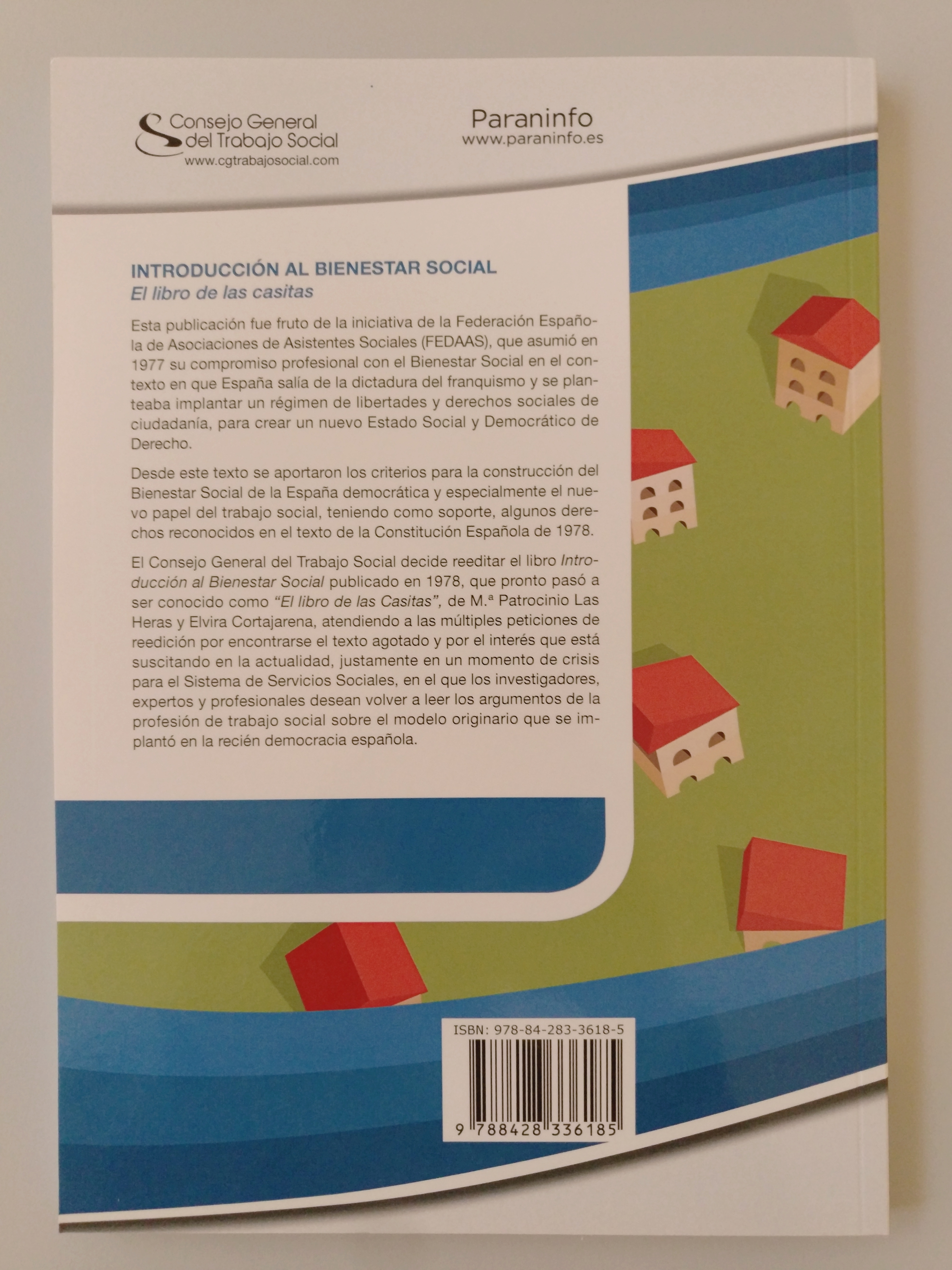 "INTRODUCCIÓN AL BIENESTAR SOCIAL. El libro de las casitas" 2014 de Mª PATROCINIO DE LAS HERAS Y ELVIRA CORTAJARENA, Editorial PARANINFO y CONSEJO GENERAL DEL TRABAJO SOCIAL.