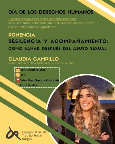 El 10 de diciembre de 2025, con motivo del Día Internacional de los Derechos Humanos, el Colegio Oficial de Trabajo Social de Burgos organiza una ponencia esencial en un momento en que los Derechos Humanos, más que nunca, están siendo cuestionados y vulnerados. Este evento nos invita a reflexionar sobre el papel de la resiliencia y el acompañamiento en los procesos de sanación tras el abuso sexual, y sobre la importancia de defender los derechos de las víctimas.