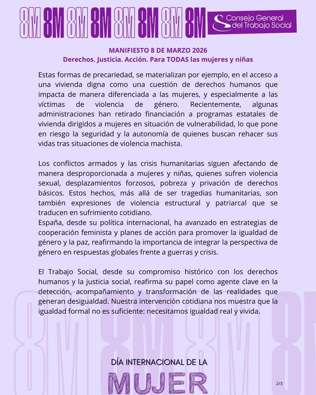 Desde el Colegio Oficial de Trabajo Social de Burgos, declaramos que nuestra profesión se declara abiertamente feminista, ya que las desigualdades de género nos atraviesan como profesión mayoritariamente feminizada; y porque es un enfoque básico en nuestro quehacer profesional ya que todavía la vulnerabilidad tiene mayoritariamente cara de mujer.