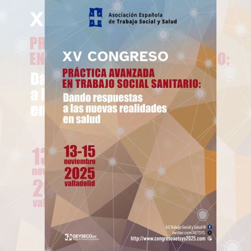 La Asociación Española de Trabajo Social y Salud (AETSYS), celebrará en la ciudad de Valladolid los días 13, 14 y 15 de noviembre de 2025 el XV Congreso Estatal de Trabajo Social y Salud, bajo el lema “Práctica avanzada en trabajo social sanitario: dando respuestas a las nuevas realidades en salud”.