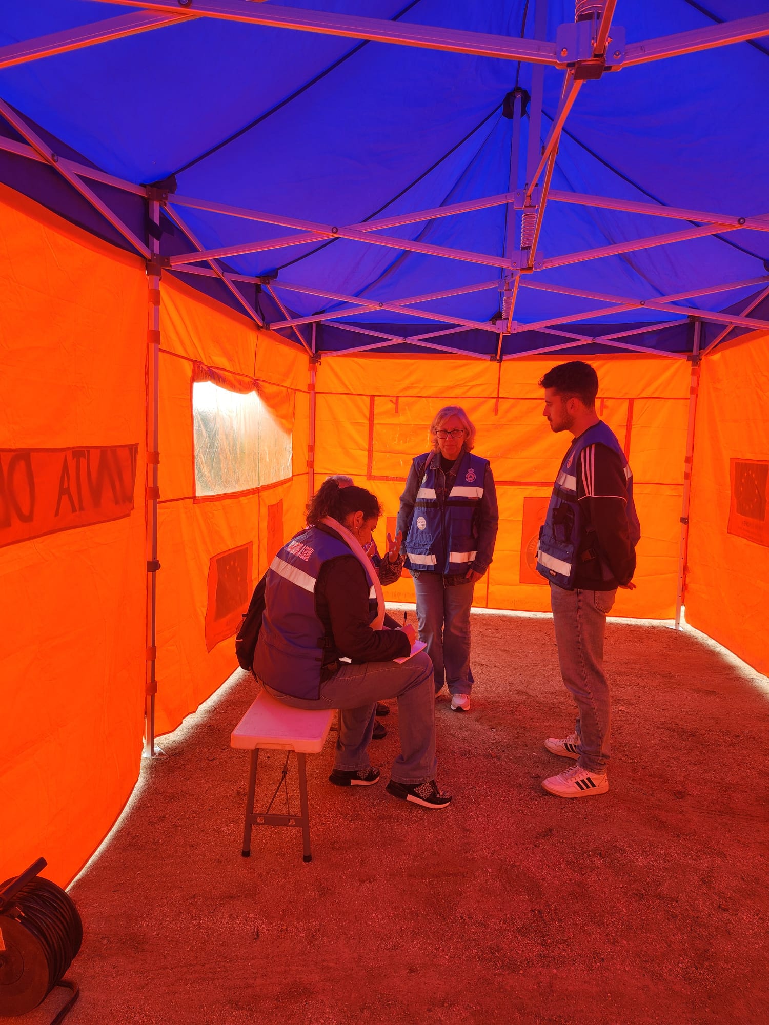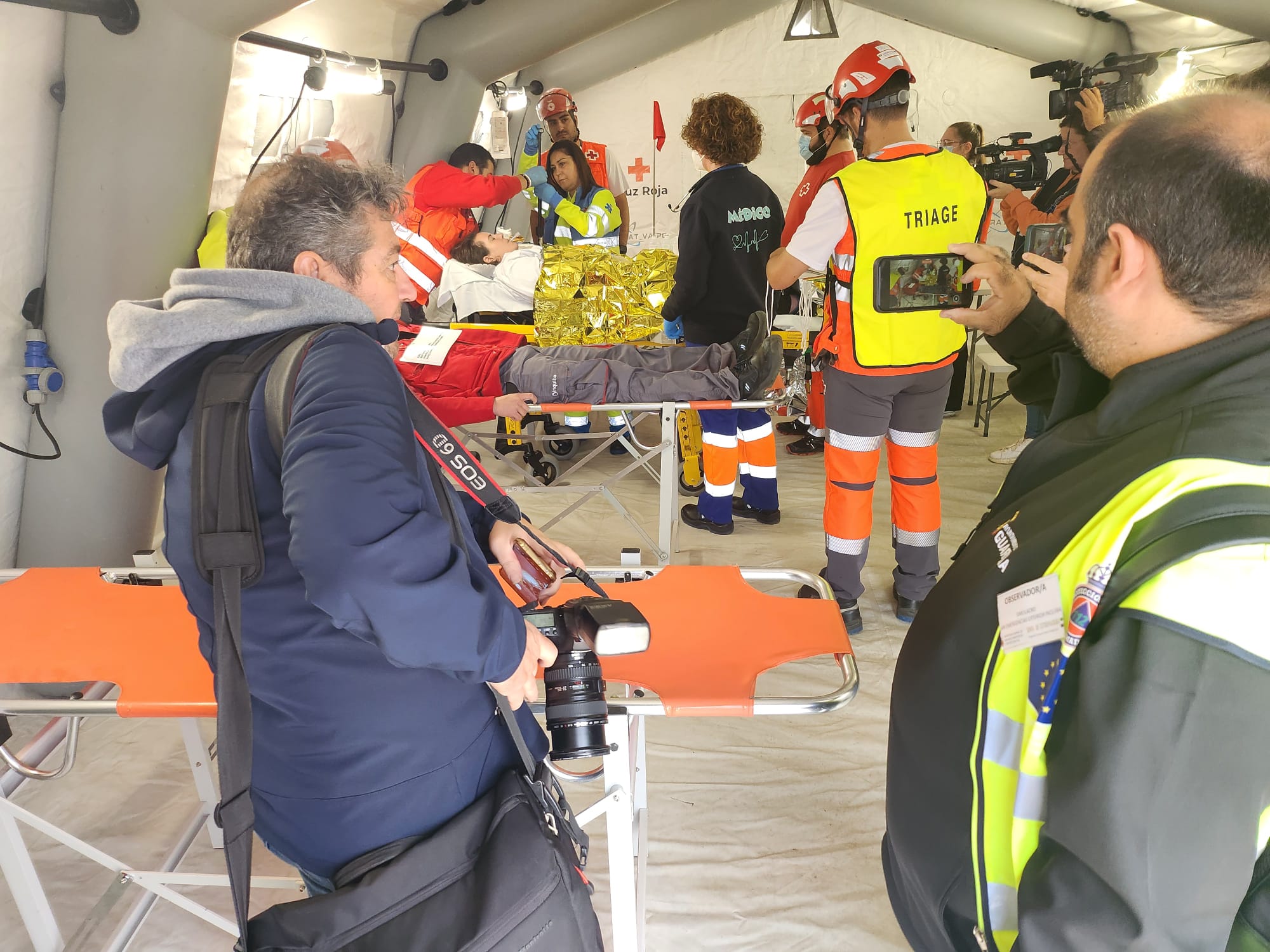 Recogemos una batería de imagenes de la atención psicológica, sanitaria, social, logística, fuerzas y cuerpos de seguridad, figurantes que representabana a población afectada y Puesto de mando avanzado.