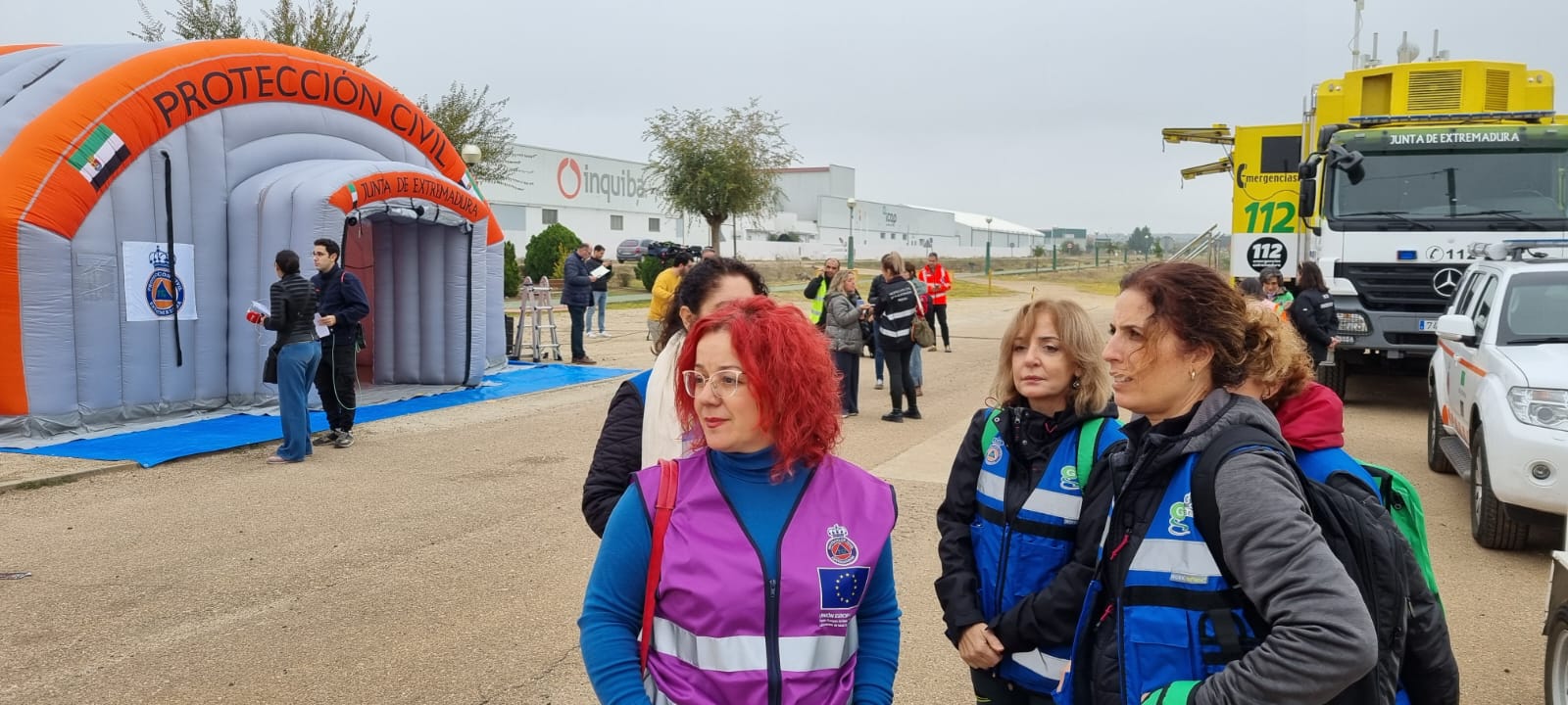 Galeria de imágenes de los distintos Grupos de acción en el Simulacro por alerta química desarrollado en las instalaciones y proximidades a la fábrica Inquiba en Guareña (Badajoz)