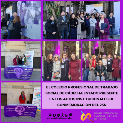 El 25N es un día para conmemorar la lucha por la eliminación de la violencia contra las mujeres en todos los escenarios posibles. El Colegio Profesional de Trabajo Social de Cádiz está presente en los actos que se han celebrado en la ciudad de Cádiz.