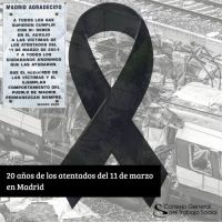 Con motivo del 20 aniversario de los atentados del 11 de marzo, queremos recordar el texto de la placa conmemorativa a equipos de emergencia y población en general: «A todos los que cumplieron con su deber en el auxilio a las víctimas de los atentados de marzo de 2004 y a todos los ciudadanos anónimos que las ayudaron. Que el recuerdo de las víctimas y el ejemplar comportamiento del pueblo de Madrid permanezcan siempre»