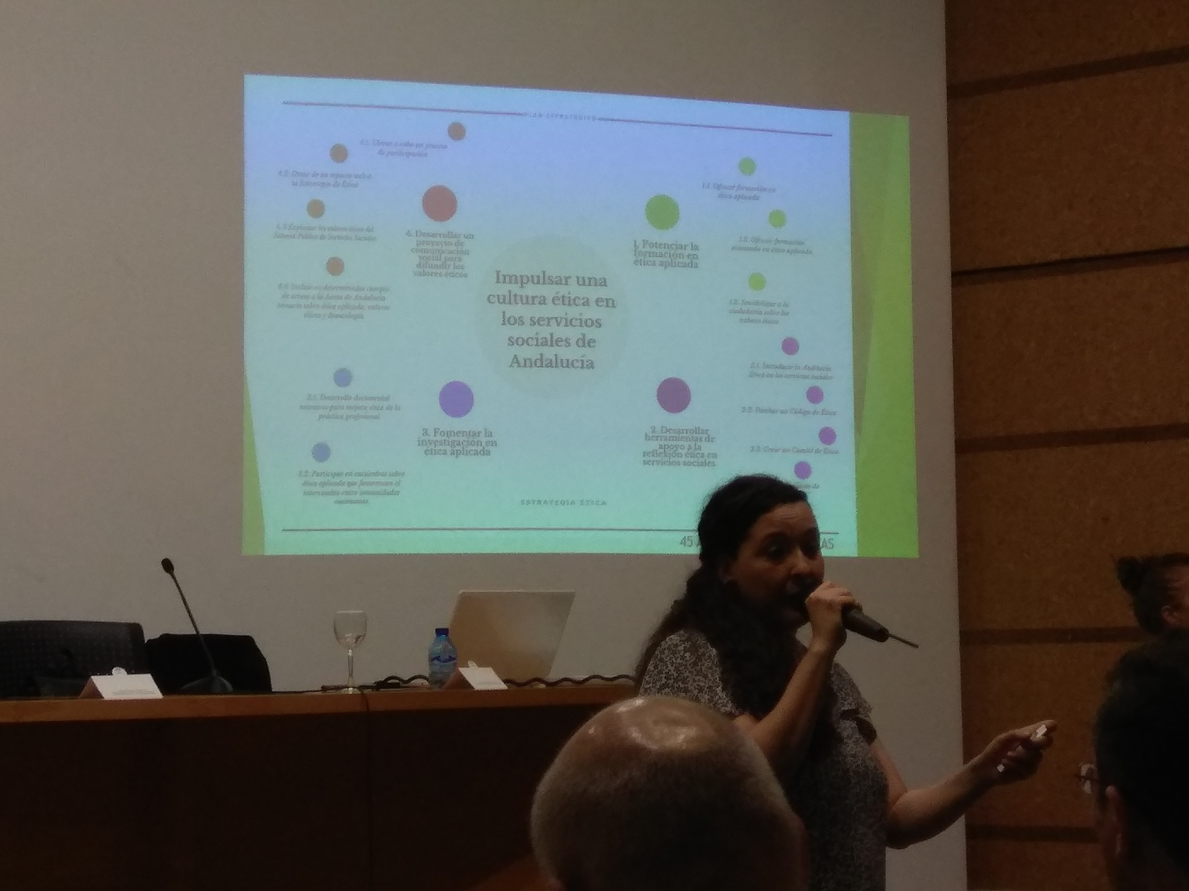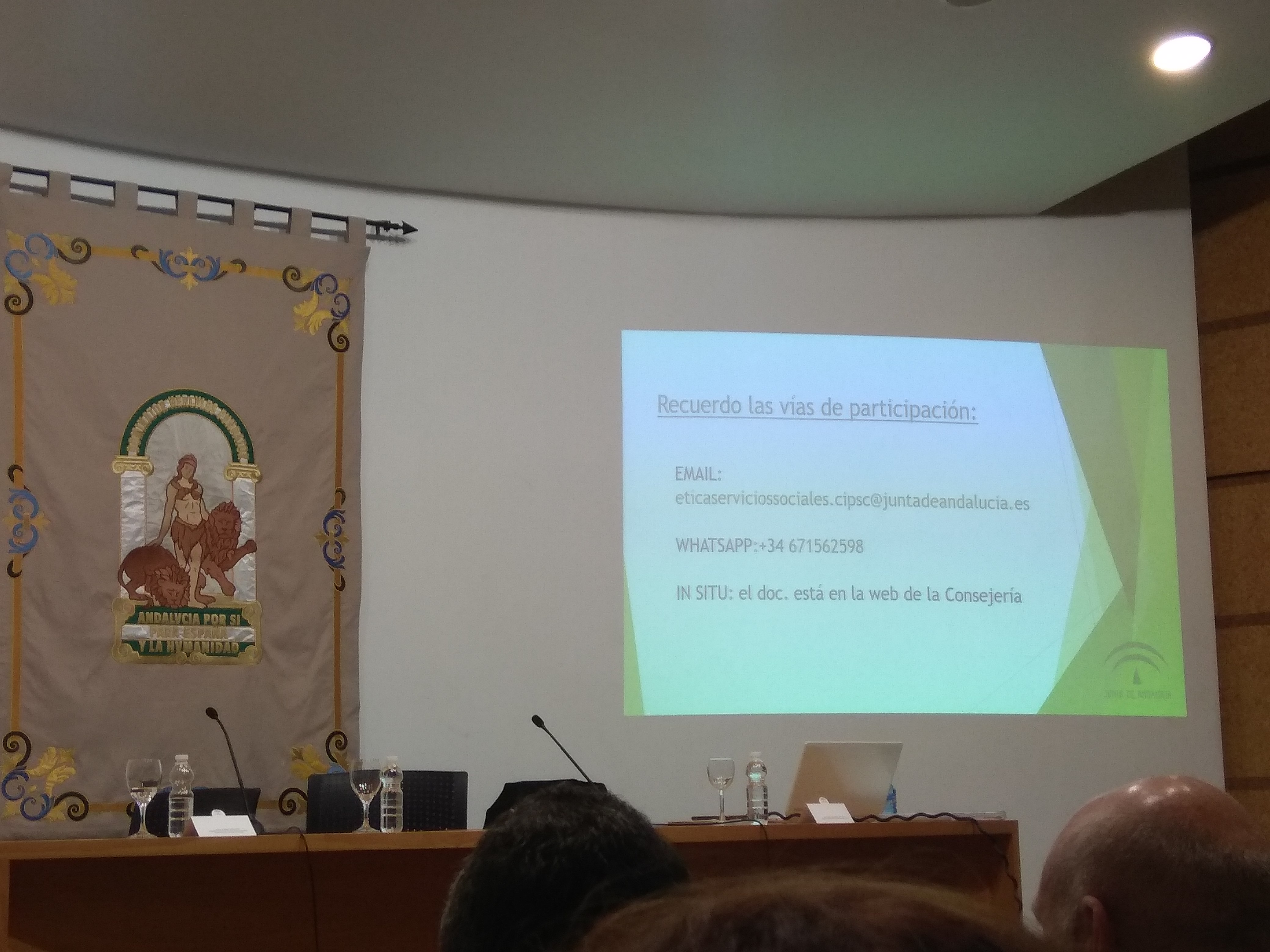 Tras la presentación del acto, en una primera parte, la ponente hizo una exposición teórica sobre la ética e introdujo conceptos y temas clave para el desarrollo estratégico como: ética y moral, dilemas y problemas éticos, autonomía, justicia social, dignidad, malas y buenas prácticas, entre otras como casos prácticos y situaciones, que dieron pie a intervenciones profesionales in situ. En una segunda parte, se estableció brevemente la estructura de la Estrategia como plan, los objetivos, las acciones, las propuestas y las vías para realizar aportaciones: por registro de la Consejería, por correo electrónico a eticaserviciossociales.cipsc@juntadeandalucia.es; o por whatsapp +34 671562598. Borrador disponible aquí.