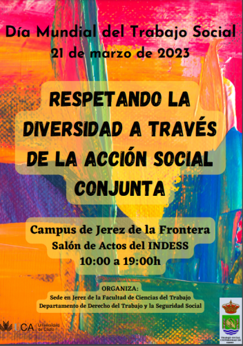 El próximo martes 21 de marzo en la Facultad de Trabajo Social de la UCA en Jerez, se celebra el Día Mundial del Trabajo Social con una Jornada con el título “RESPETANDO LA DIVERSIDAD A TRAVÉS DE LA ACCIÓN SOCIAL CONJUNTA”
