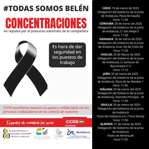 Los Colegios antes mencionados se adhieren a las concentraciones convocadas por Comisiones Obreras (CCOO) e invitan a participar tanto a los diferentes colectivos de la intervención social de la Comunidad Autónoma de Andalucía y la ciudadanía.