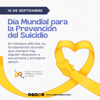 Hoy, 10 de septiembre, conmemoramos el Día mundial para la prevención del suicidio, organizado por la Asociación Internacional para la Prevención del Suicidio (IASP) y avalado por la Organización Mundial de la Salud (OMS). En España, el suicidio es la primera causa de muerte no natural. 3.952 personas se quitaron la vida en nuestro país en 2023, muchas de ellas jóvenes. Este evento centra la atención en el tema, reduce el estigma y crea conciencia entre las organizaciones, gobiernos y ciudadanía para prevenir y acompañar.