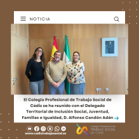 El 3 de diciembre el Colegio Profesional de Trabajo Social de Cádiz se ha reunido con el delegado territorial de Inclusión Social, Juventud, Familias e Igualdad, D. Alfonso Candón Adán
